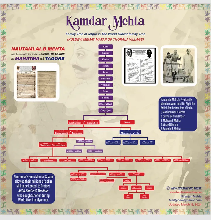Nautamlal B Mehta was born into one of the world’s oldest genealogical families, with 18…